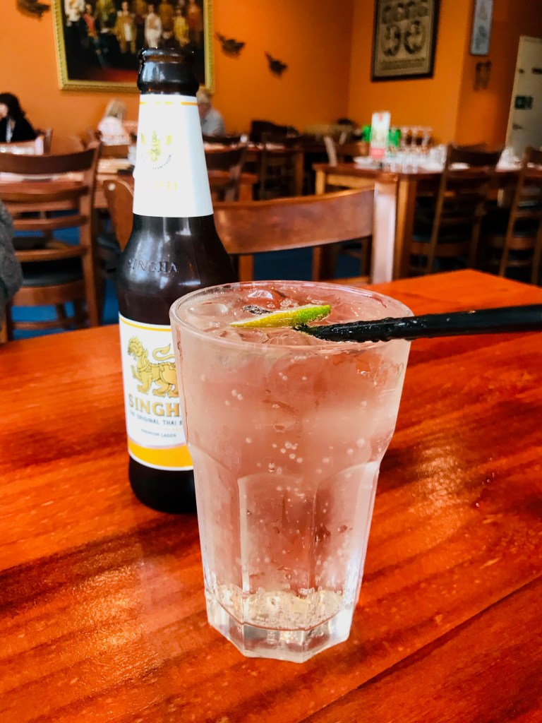 Lemon, lime and bitters and a Singha beer