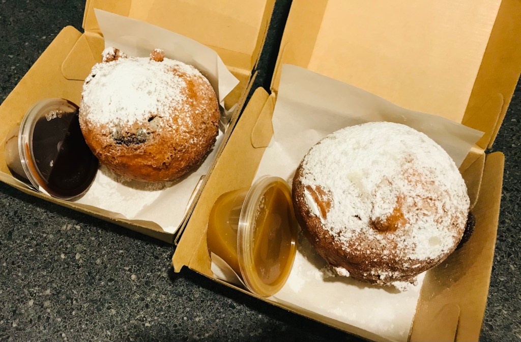 Extremely sweet and still warm, the batter was like doughnut batter and the brownie was gooey and melty. They were very rich and didn’t need the accompanying sauces, and I’d recommend one to share rather than a whole one each!