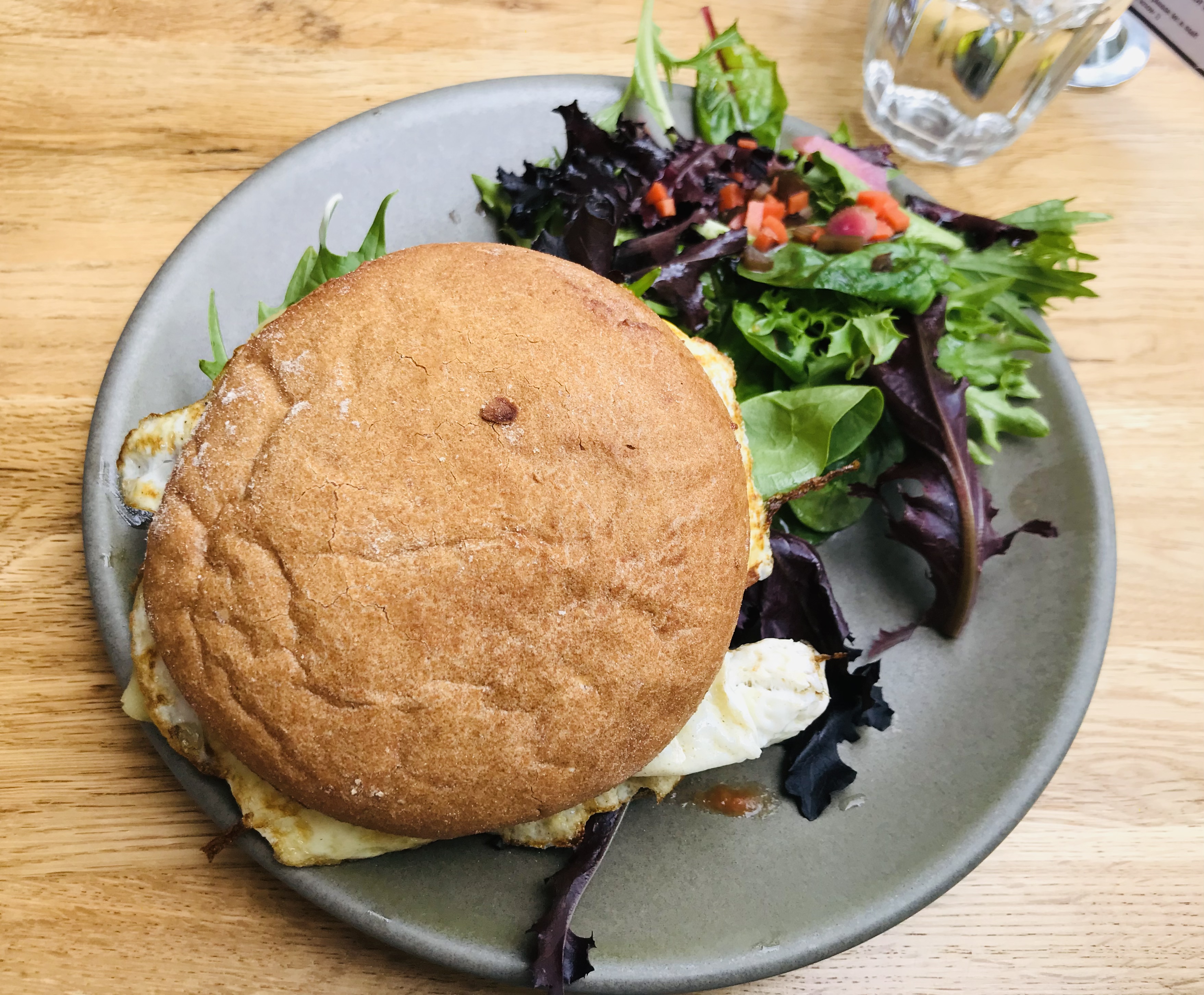 The sparse side contained some fried egg, spiced lentil and potato fritter and lots of mayonnaise. It was very delicate and the lentil fritter was so good! The texture was smooth and you could taste the lentils. The other side of the burger had all these ingredients plus the cheddar cheese, tomato chutney, house pickles and salad leaves. It was much more flavourful and still quite delicious. Overall it was quite creamy and savoury. I couldn’t taste the tomato chutney at all so it could’ve done with more of this and I think extra pickle would’ve given the whole thing some extra bite to cut through the creaminess. Overall it was very nice though and I’d get it again, just for the lovely spice lentil and potato fritter!