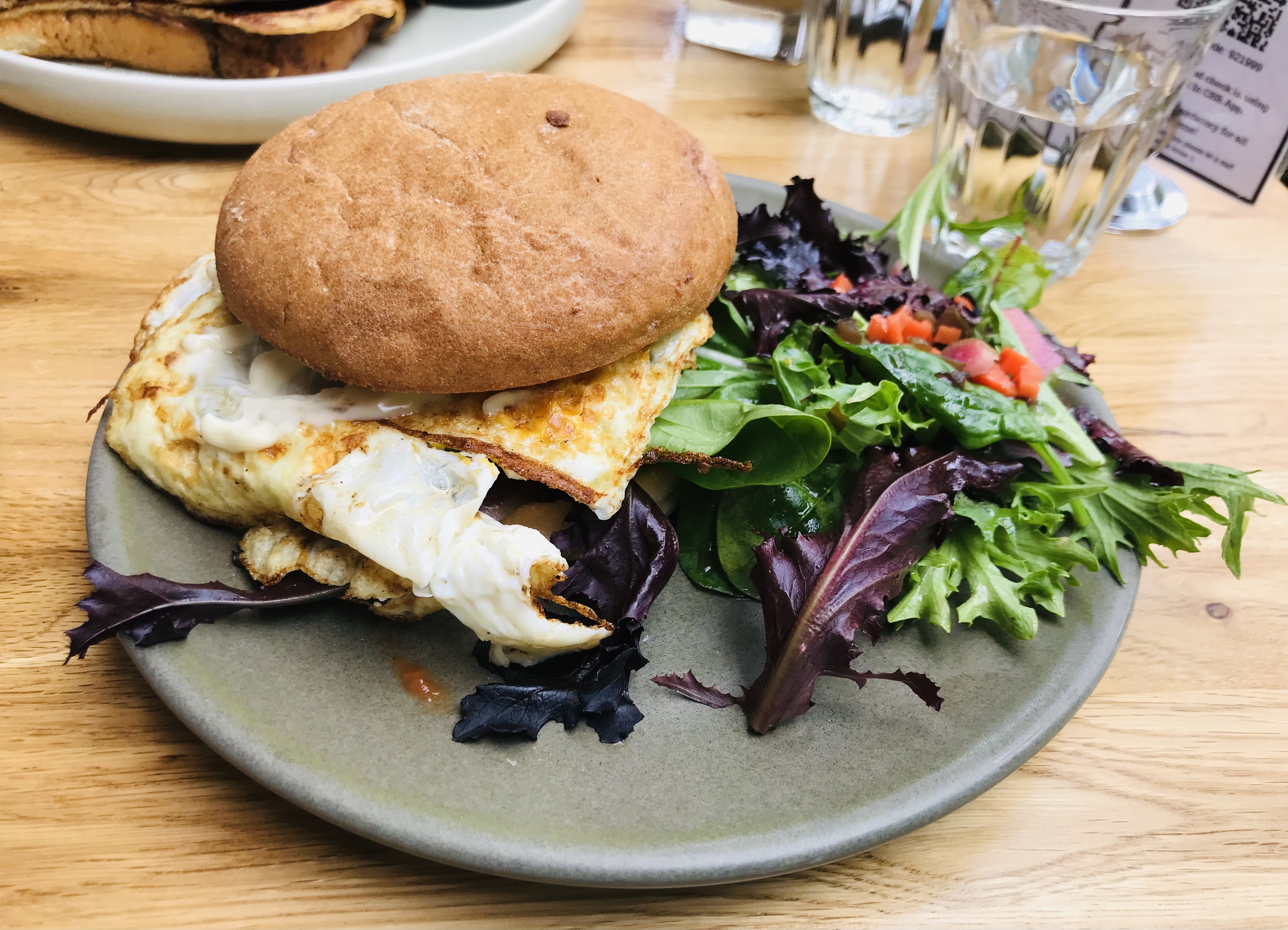The brekky burger came out with a little salad that was nice and fresh with a slightly sweet dressing and some tiny pieces of pickled carrot, celery and what I think was red onion. The burger itself was like eating two separate things. I think it had unintentionally been constructed a bit off-centre, so one side of it was a bit sparse and the other contained all the ingredients!