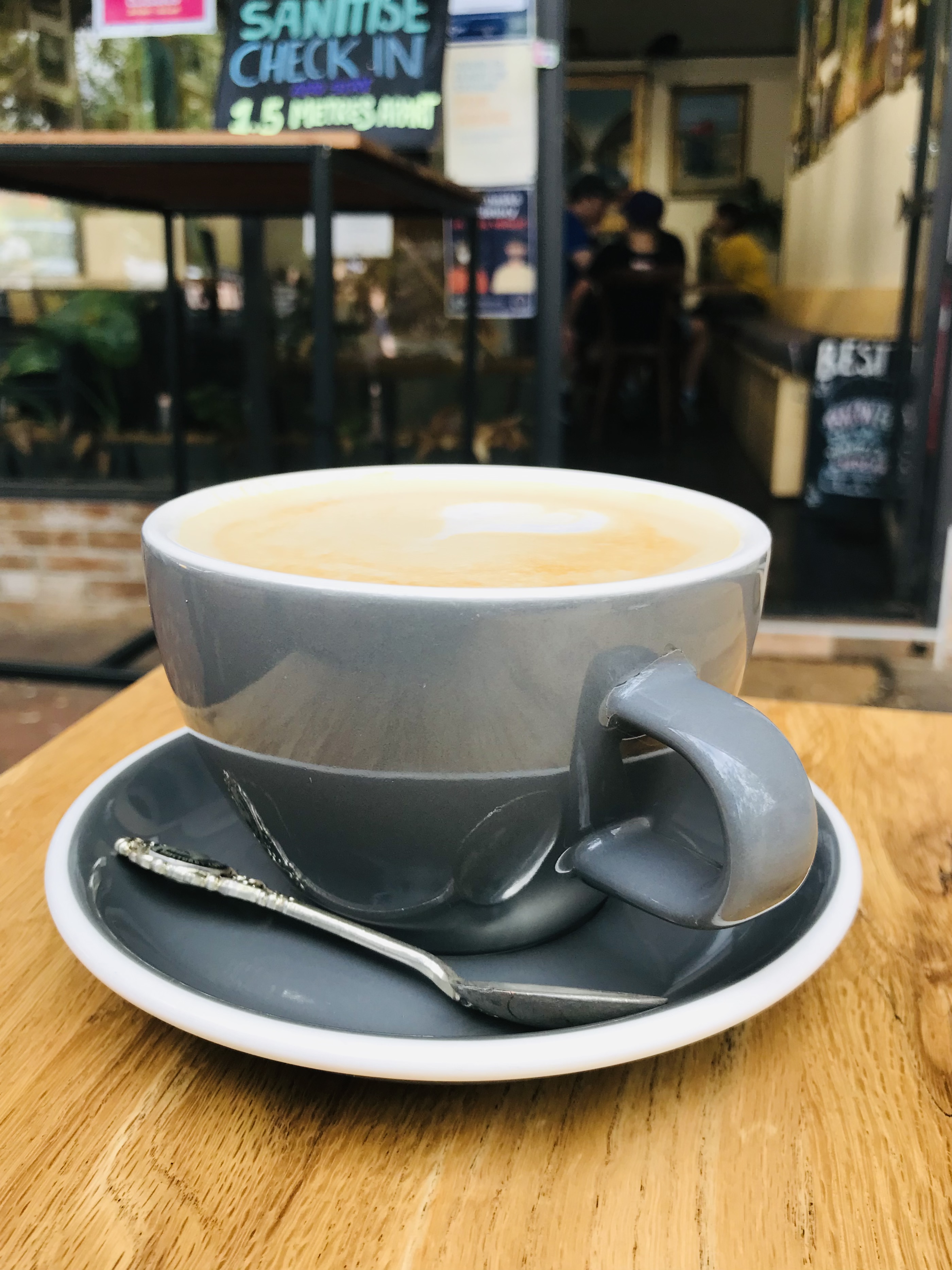 As we walked into the café, we were met by the friendliest staff member. Despite being busy, he was cheerful and helpful, telling us to take a table and explaining that the menu was accessible via QR code at the table. We sat outside, near the entrance and after a few minutes, the staff member returned to see how we were going. I asked him about the best way to order, regarding my coeliac requirements and was pleased to find out he was also coeliac! He stated the kitchen had procedures in place to avoid cross contamination, discussed my options and said that he frequently ate the food without any problems. He said we should be able to order using the menu online without problems but said he’d come back to check if we needed any more help.