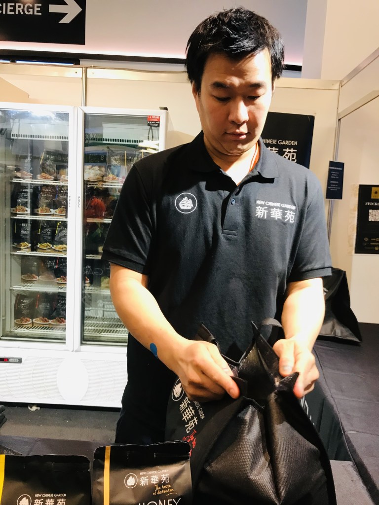 The Arnotts stand had all their yummy treats to sample and buy, and I scarfed down a scrummy mint slice. The Ayam stand didn’t have any samples but they did have a very good range of discounted products, including some new Asian soups and different soy sauce options (light, dark and kecap manis) that we bought. We then spent a small fortune at the Simply Wize stand on grissini, zoo biscuits, almond crispbreads, pastry, gyoza and samosas – to name a few of the bits we picked up! At the Schar stand they were selling their products at a decent discount and we picked up three bags of savoiardi for $10 for my mother in law to put in her trifles/tiramisu. We splurged on 10 packs of frozen dumplings from House of Goodness, and 5 packet meals from New Chinese Garden – both great options for coeliacs craving safe Chinese food!
