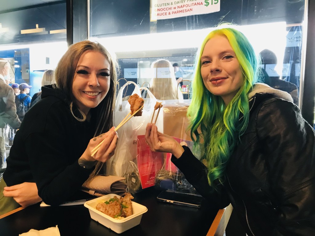 We stopped off at Positively Good Chicken, a vendor selling a nugget labelled as 50% chicken, 50% plant protein. This was not good. Just eat a chicken nugget instead. It’ll give you more pleasure. The half chook, half plant nugget had an unusual texture and an odd half meat, half plant flavour, plus it was really greasy despite being cooked in an air fryer.